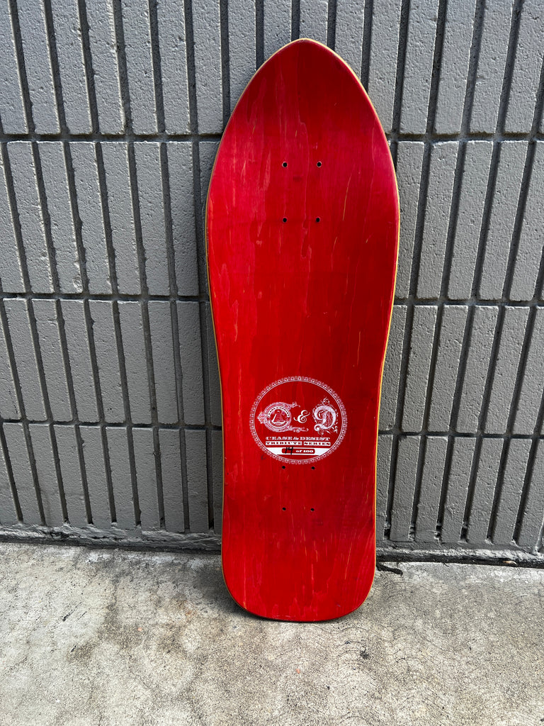 This is when Cease and Desist used screen printing so to me these are the best versions they did. Artwork is perfectly done too. I always intended to reissue this one on the authentic molds and presses with the accurate shape and concave. I recreated the artwork but never ended up doing it.